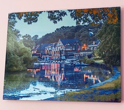 Philadelphia landmark of the Beautiful Boat house Row. This was taken using long exposure photographpy at nightime. Printed on acrylic with aluminum wall hanging, this print has a white gloss finish. SIZE:16x20