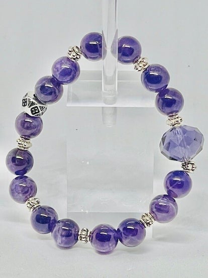 AMETHYST STRETCH BRACELET WITH 16MM CRYSTAL AMETHYST FOCAL BEAD...WRIST 6...6 1/2 INCHES.