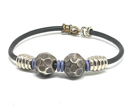 DESIGNED WITH LAMP WORK BEADS AND COPPER ACCENT. FINISHED WITH A COPPER MAGNETIC CLASP. WILL CUT LEATHER TO FIT YOUR WRIST SIZE ONCE ORDER IS RECEIVED.