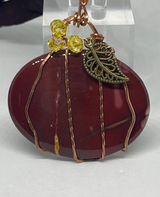 PUMPKIN PENDANT DESIGNED WITH LEAF And hand wrapped in copper.