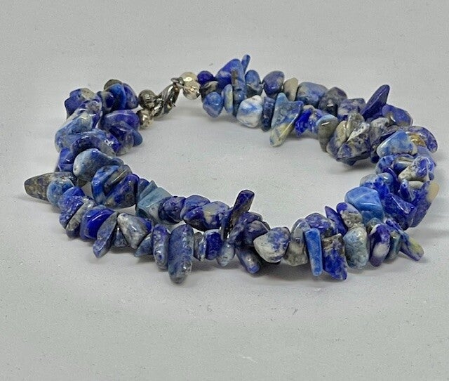 Double strand lapis lazuli 6mm chipped beads finished with a sterling silver lobster clasp. Fits wrist size 7 . 7 1/2"