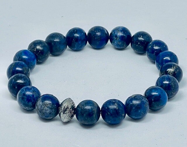 LAPIS STRETCH BRACELET WITH FOCAL BEAD. FITS WRIST SIZE 7 7 1/2"