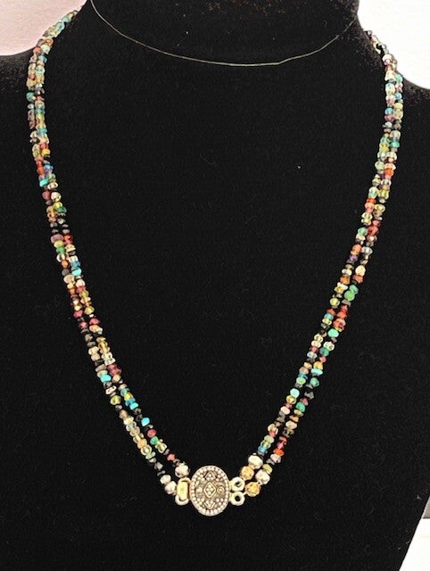 DOUBLE STRAND 16" TOURMALINE NECKLACE WITH STERLING SILVER PUSH CLASP.
