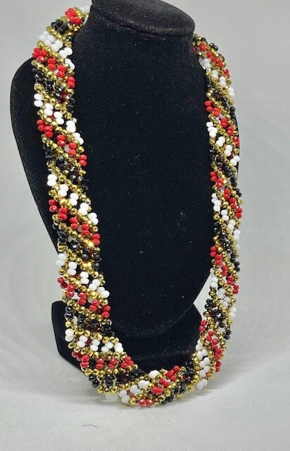 16 INCH OF SPIRAL WEAVING . THIS NECKLACE IS FINISHED WITH A GOLD PLATED MAGNETIC CLASP.
