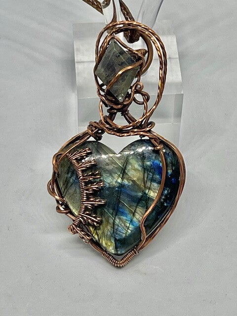 ANOTHER FLASHY LABRADORITE HANDWRAPPED IN COPPER, OXIDIZED FOR THAT ANTIQUE LOOK. SPIRITUAL PROTECTION & INNER STRENGTH.