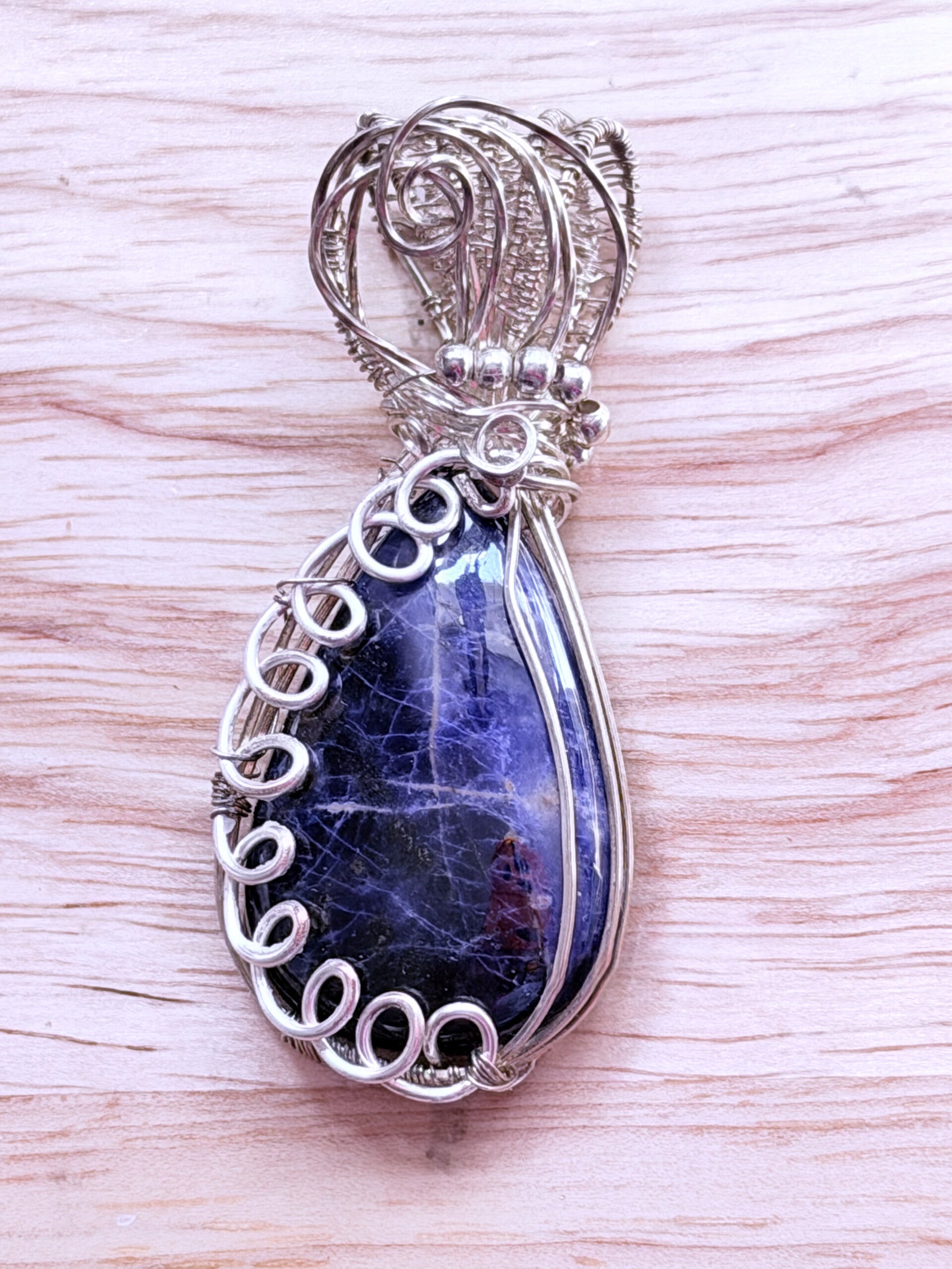 THE STONE IS A CHARIOTE DESIGNED WITH .925 STERLING SILVER. THIS IS A RARE VIBRANT PURPLE STONE OF TRANSFORMATION.ABILITY TO OVERCOME FEAR, PROMOTE DEEP INNER HEALING, AND ACCELERATE SPIRITUAL GROWTH.